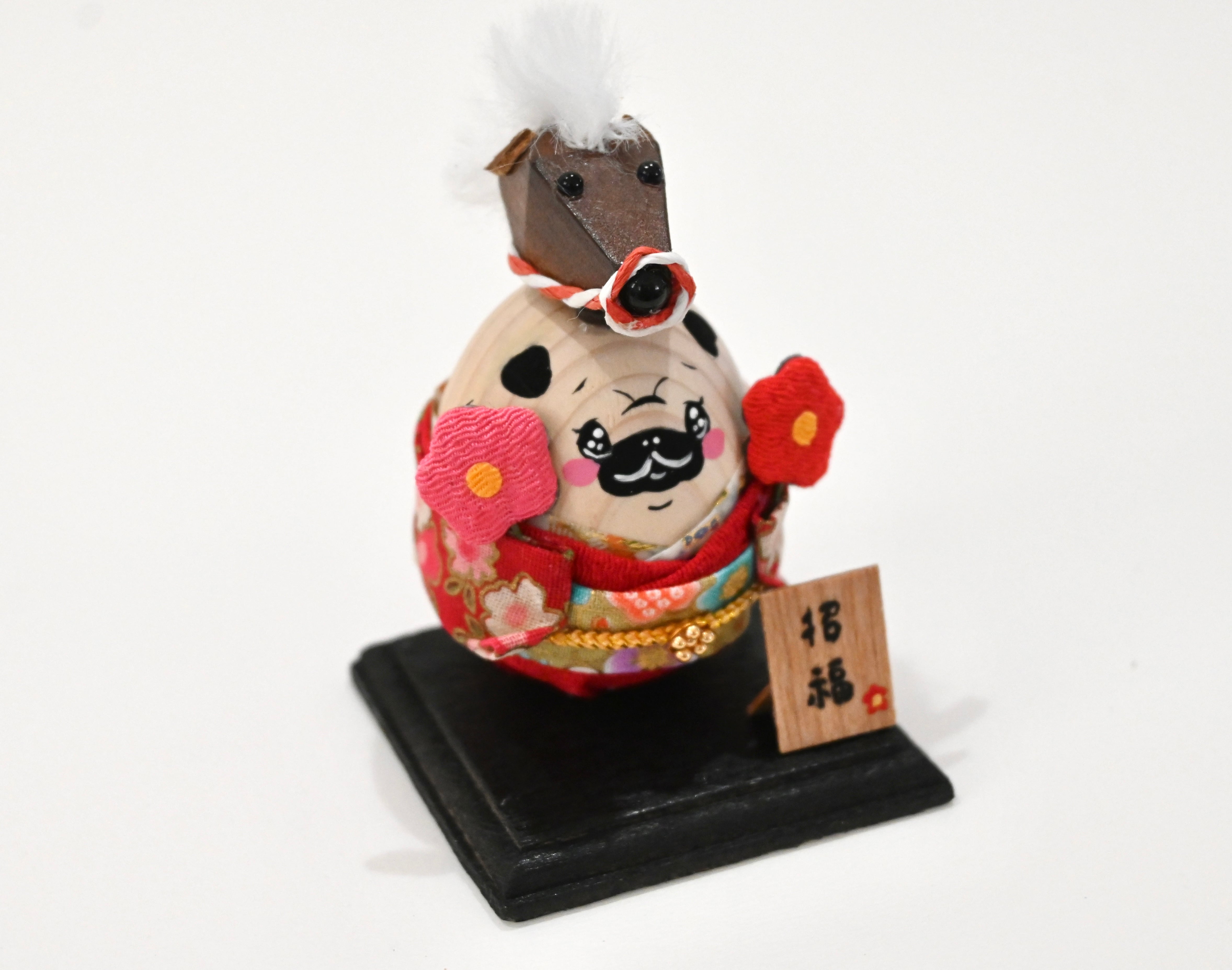 こけしの主な材料・・・国産ひのき、アクリルガッシュ、布、樹脂粘土